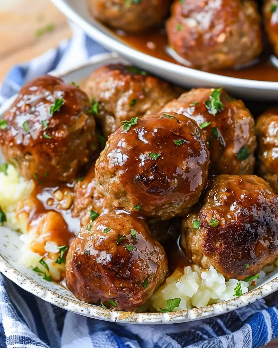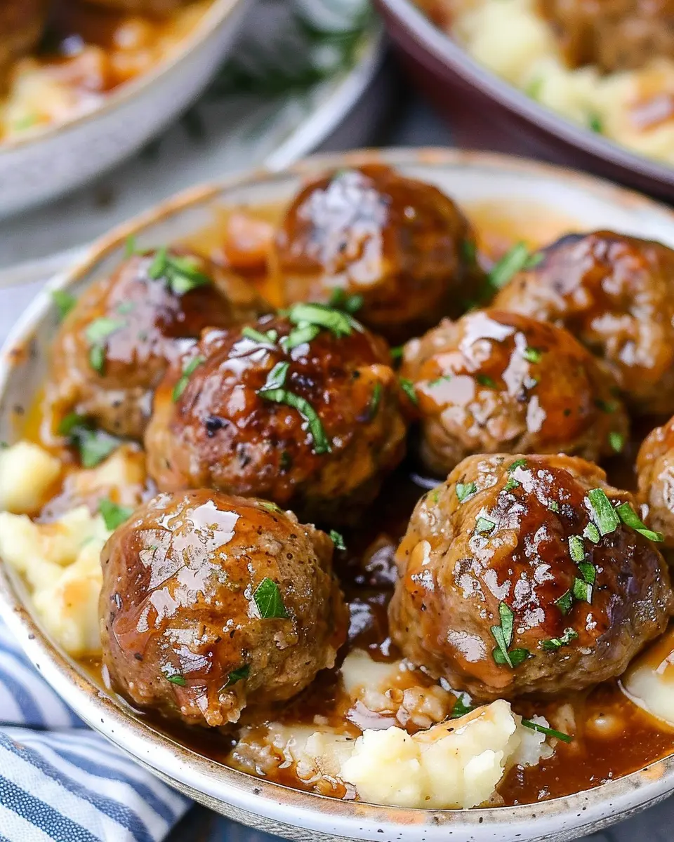 PrintSlow Cooker Salisbury Steak Meatballs: Easy Comfort Food Delight