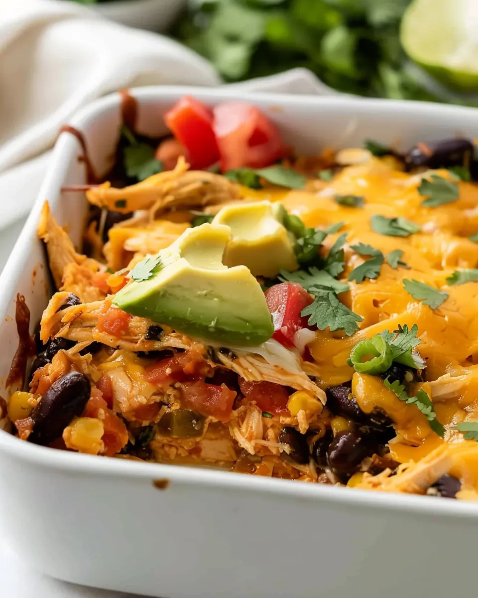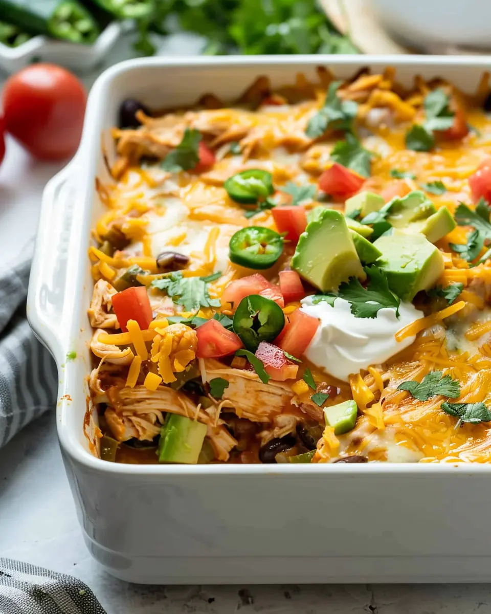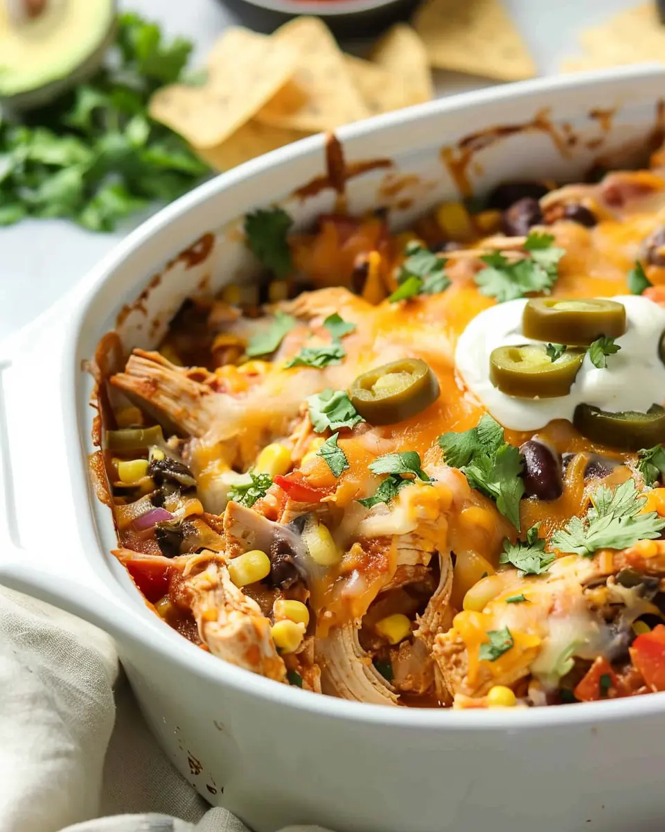 A hearty and flavorful Southwest Chicken Casserole that combines chicken with a medley of spices and toppings, perfect for family dinners.