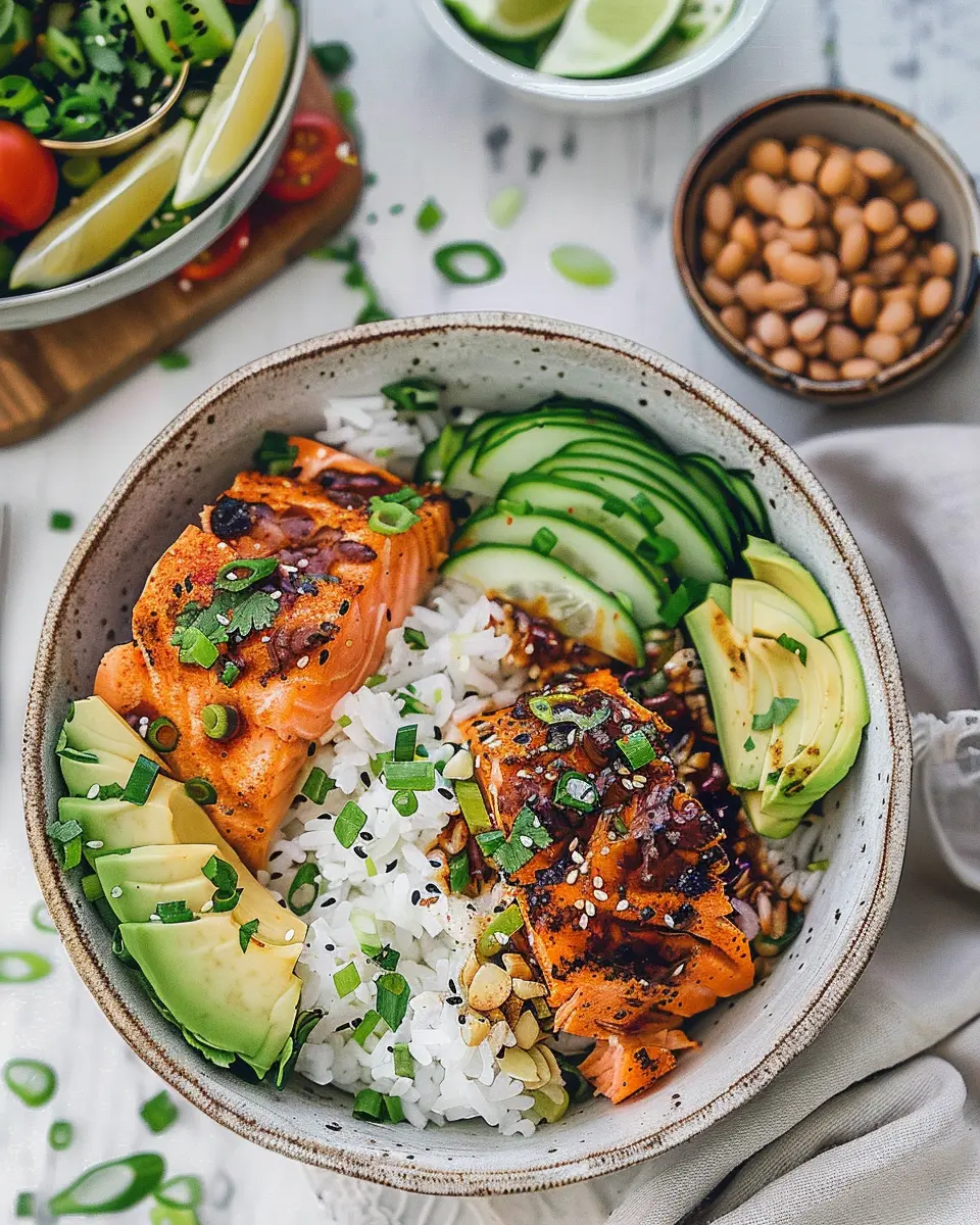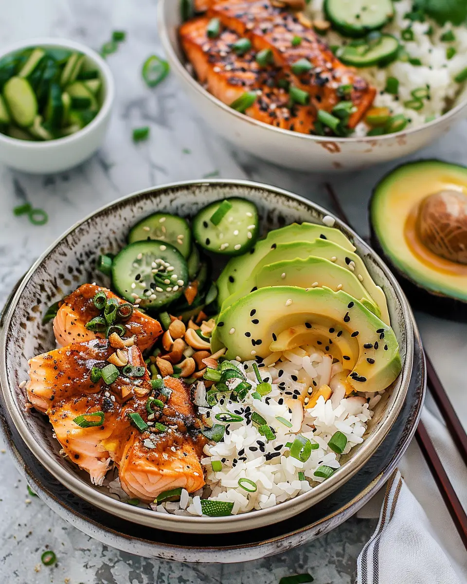 Aesthetic Appeal: Let’s be real—food that looks good is so much more enjoyable. The vibrant colors of the salmon, vegetables, and coconut rice make these bowls as pleasing to the eye as they are to the palate. Trust me, you’ll want to snap a pic before diving in!