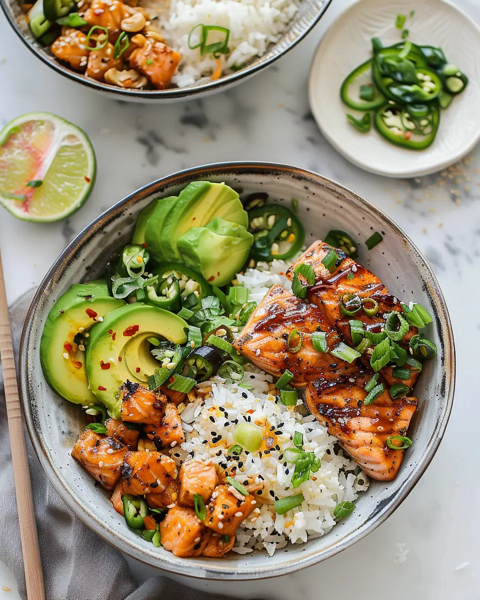 PrintSpicy Salmon Bowls: The Best Coconut Rice Recipe for Food Lovers
