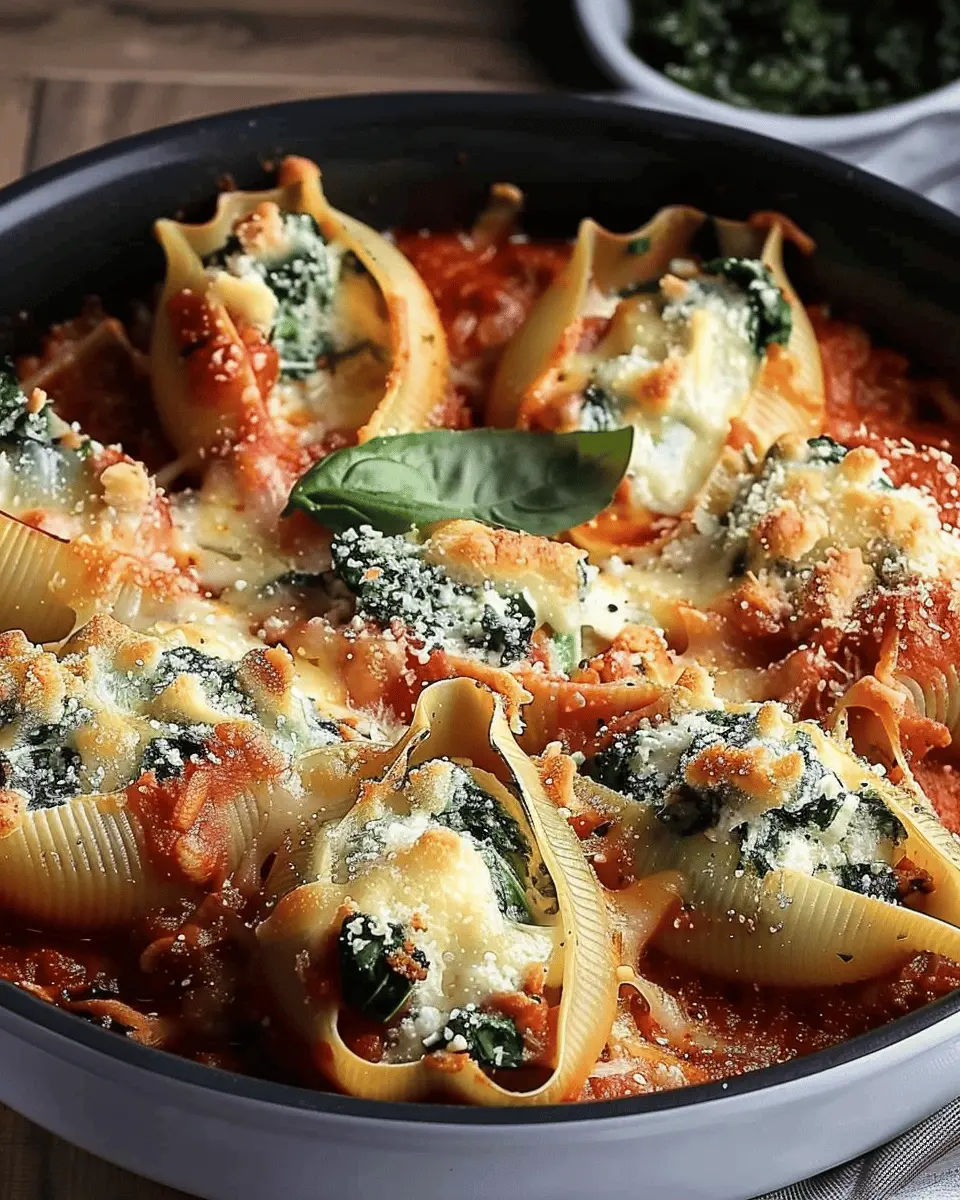 - Let them rest: Allow the spinach and ricotta stuffed shells to cool for about 10 minutes. This resting time helps the flavors set and makes them easier to serve.