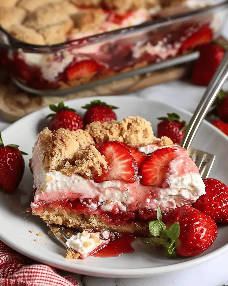 The beauty of a strawberry cheesecake dump cake lies in its versatility! Don’t hesitate to switch up the flavors. For instance, instead of just using strawberries, try mixing in raspberries or blueberries for a delightful berry medley. You can also experiment with different cake mixes; a lemon or vanilla cake mix can add a nice zing. And if you’re feeling adventurous, consider adding a splash of almond extract to your cream cheese layer for a unique twist. Each variation can provide a refreshing take on this classic dessert!