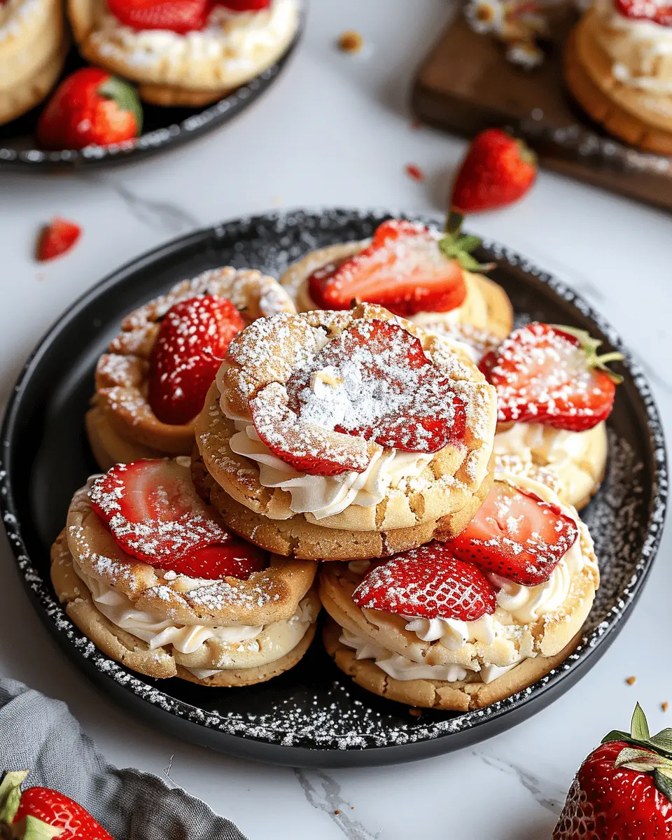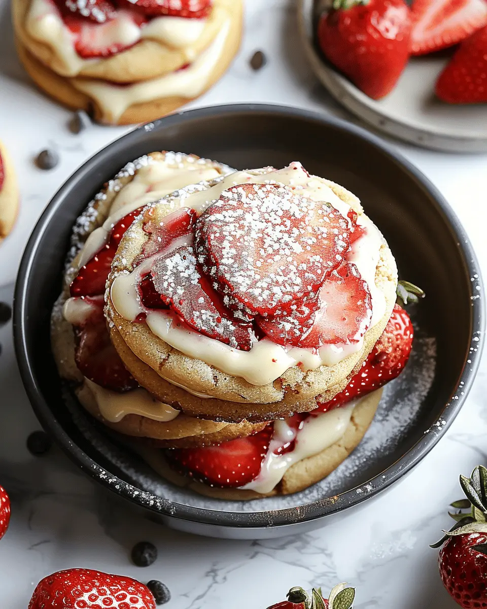 Elevate your dessert game by transforming your strawberry cheesecake stuffed cookies into epic cookie sandwiches! Simply place a scoop of vanilla or strawberry ice cream between two cookies for a deliciously messy treat that’s sure to impress your friends. Want to create a little magic on your plate? Serve your cookies à la mode, drizzled with chocolate or strawberry sauce, and topped with whipped cream. This not only looks stunning but also adds an extra layer of flavor that takes your cookies to the next level.