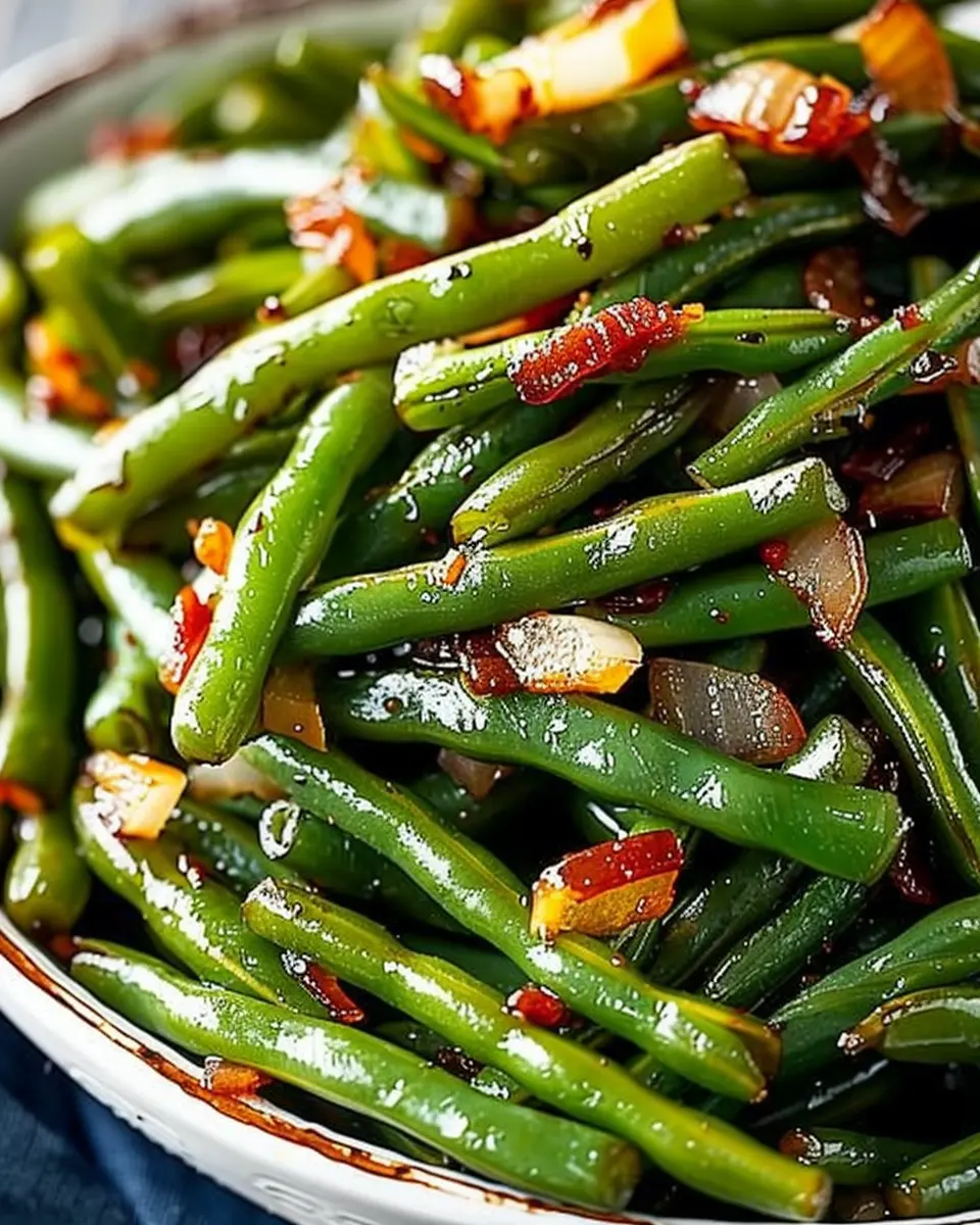 A delicious and easy recipe for sweet and sour green beans with turkey bacon that brings flavors together in a delightful way.
