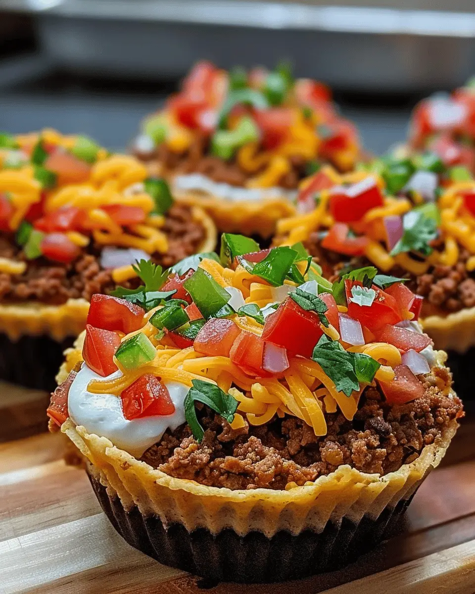 Taco Cupcakes Delight: A Flavorful Appetizer that combines the best of tacos and cupcakes for a delightful eating experience.