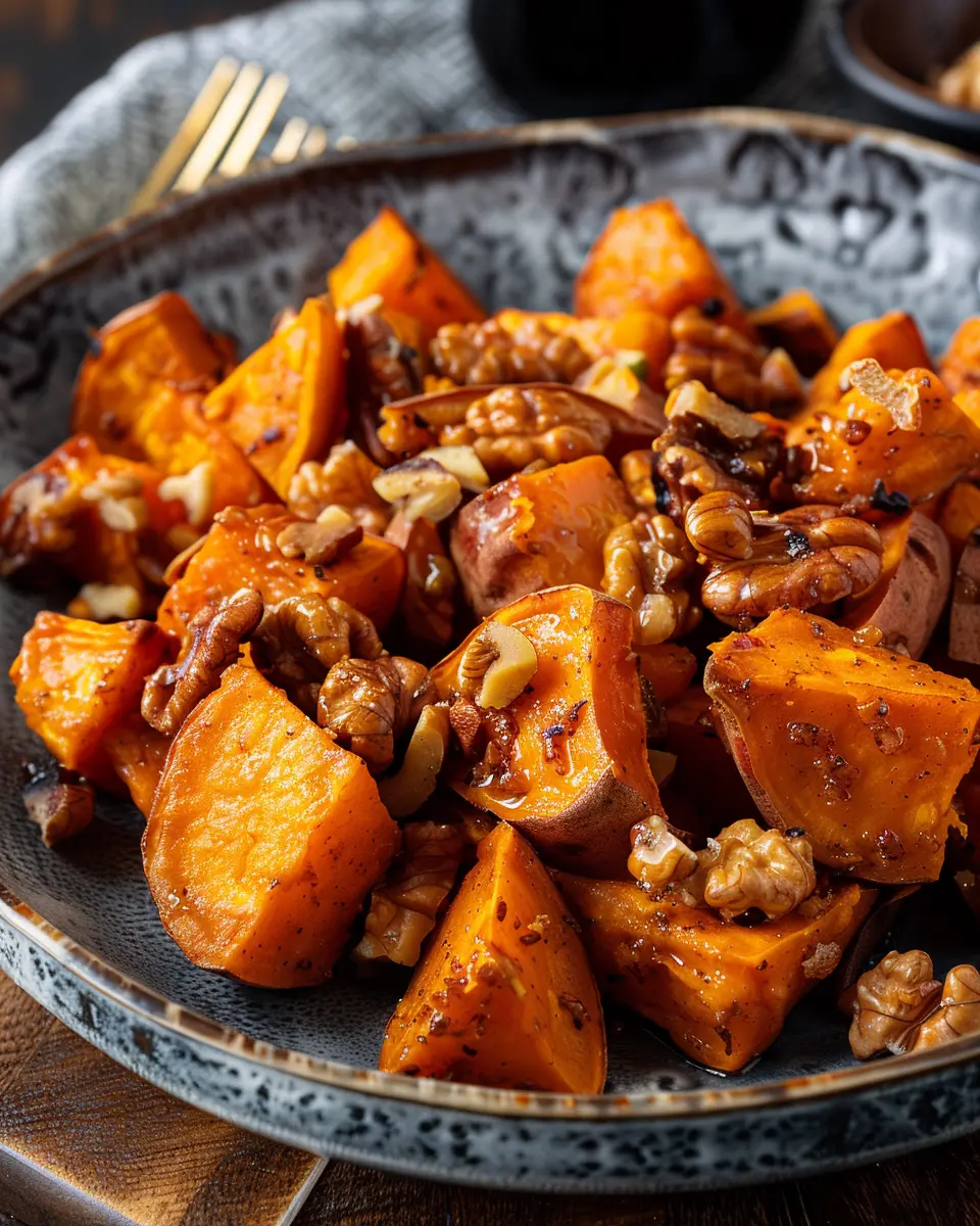 The Walnut Maple Roasted Sweet Potatoes Recipe combines the vibrant flavors of sweet potatoes and walnuts, both of which offer remarkable health benefits: