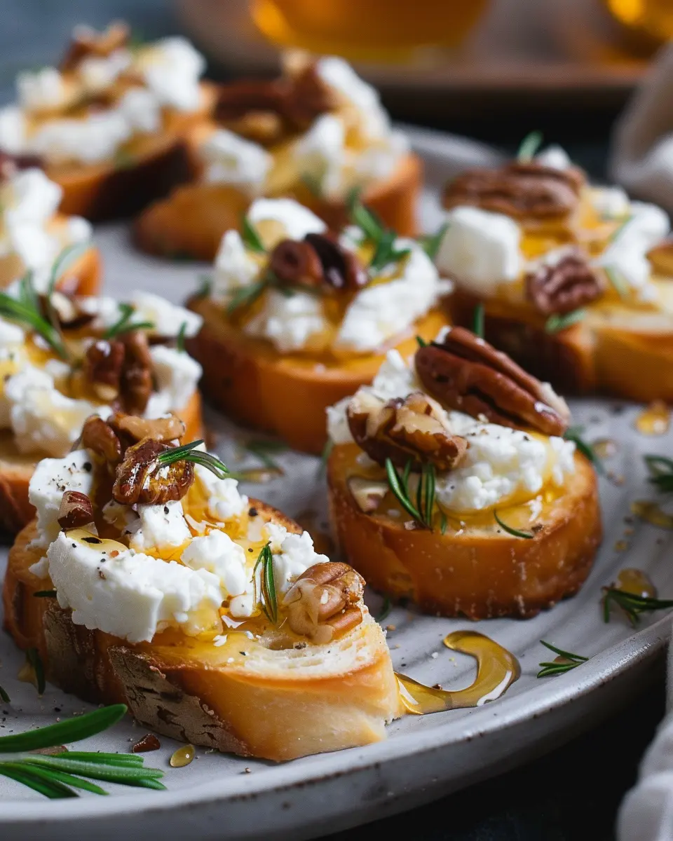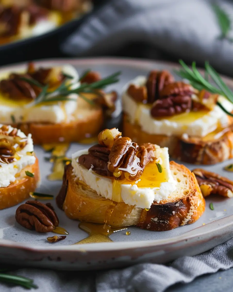 PrintWhipped Feta Crostinis: Indulgent Hot Honey and Pecan Delight
