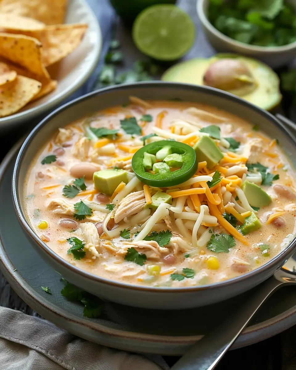 Elevate your white chicken chili experience with some delightful toppings that create a burst of flavor and texture. Consider adding: